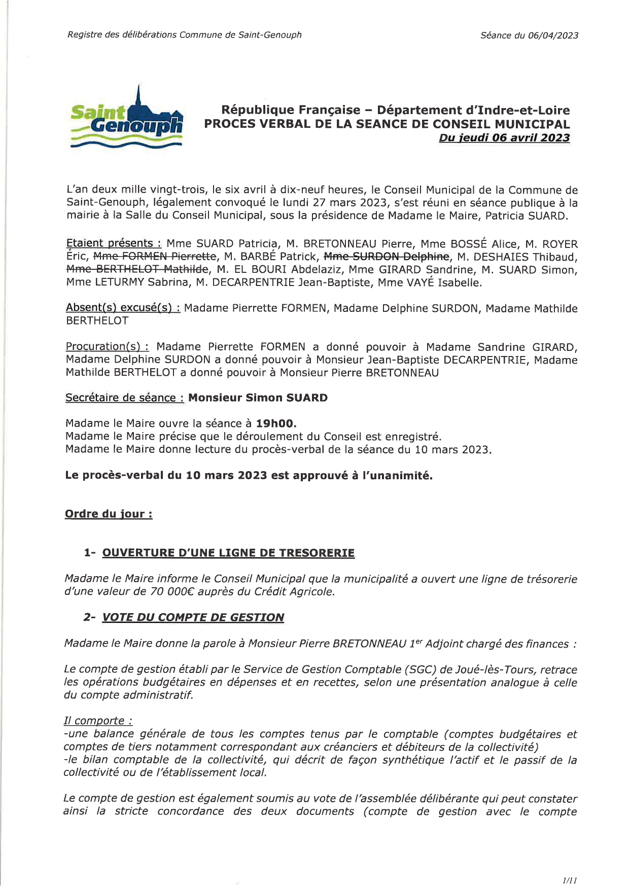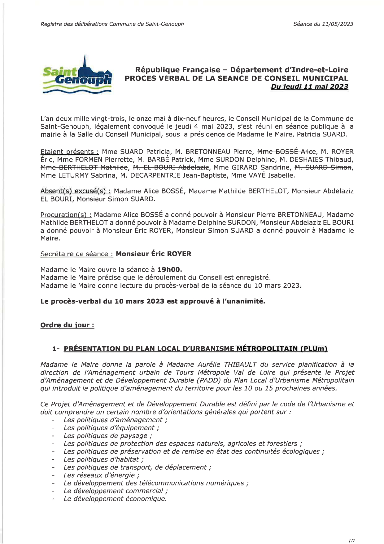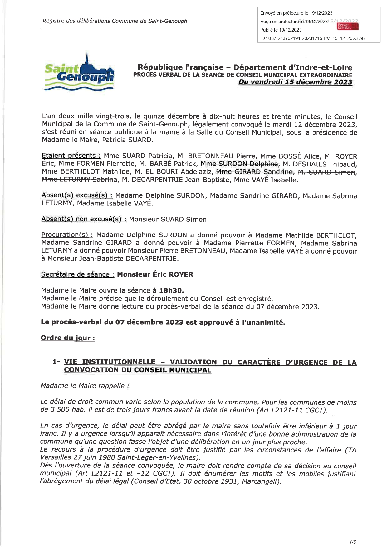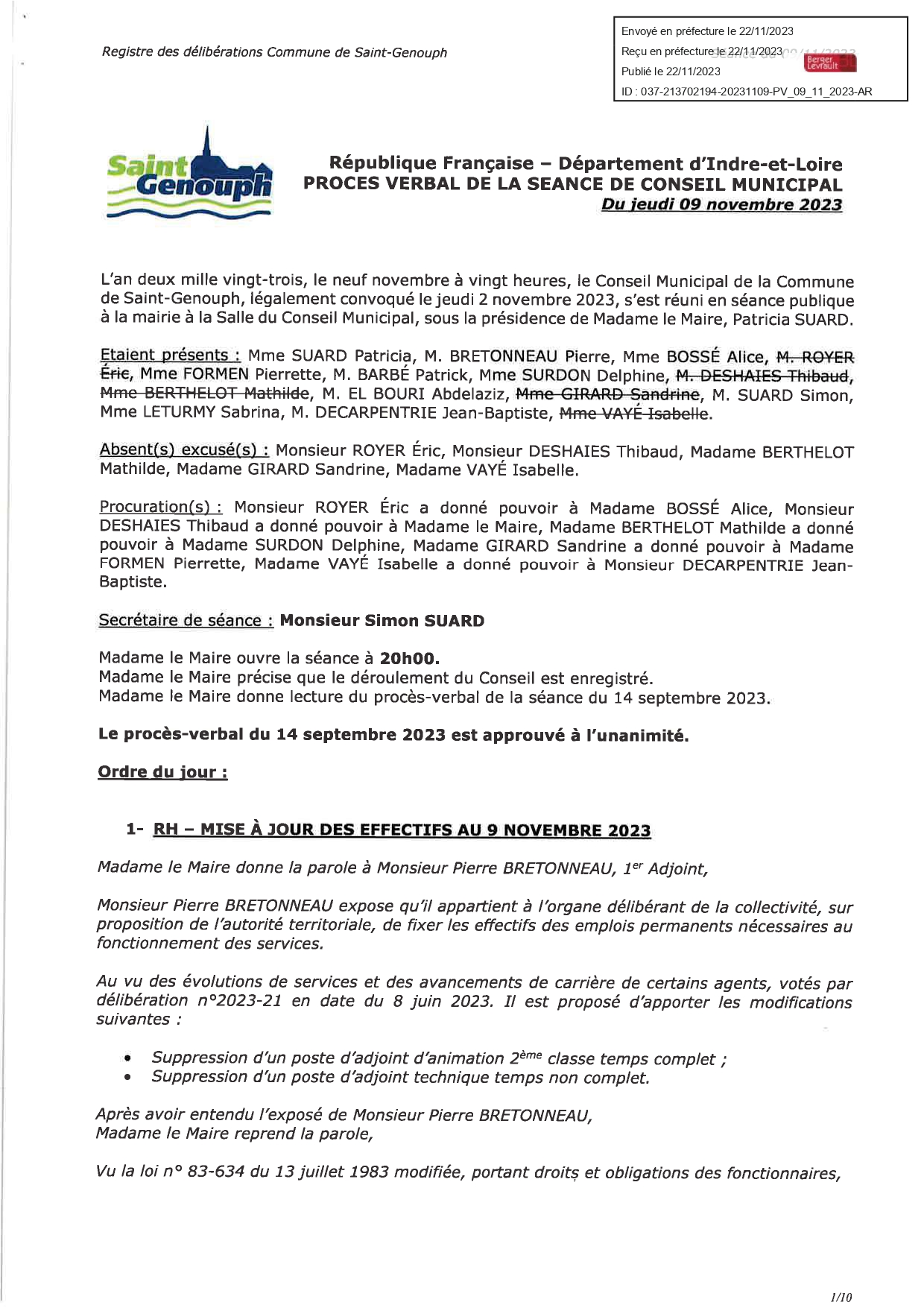 L'année 2023 : conseils municipaux de la commune de St Genouph