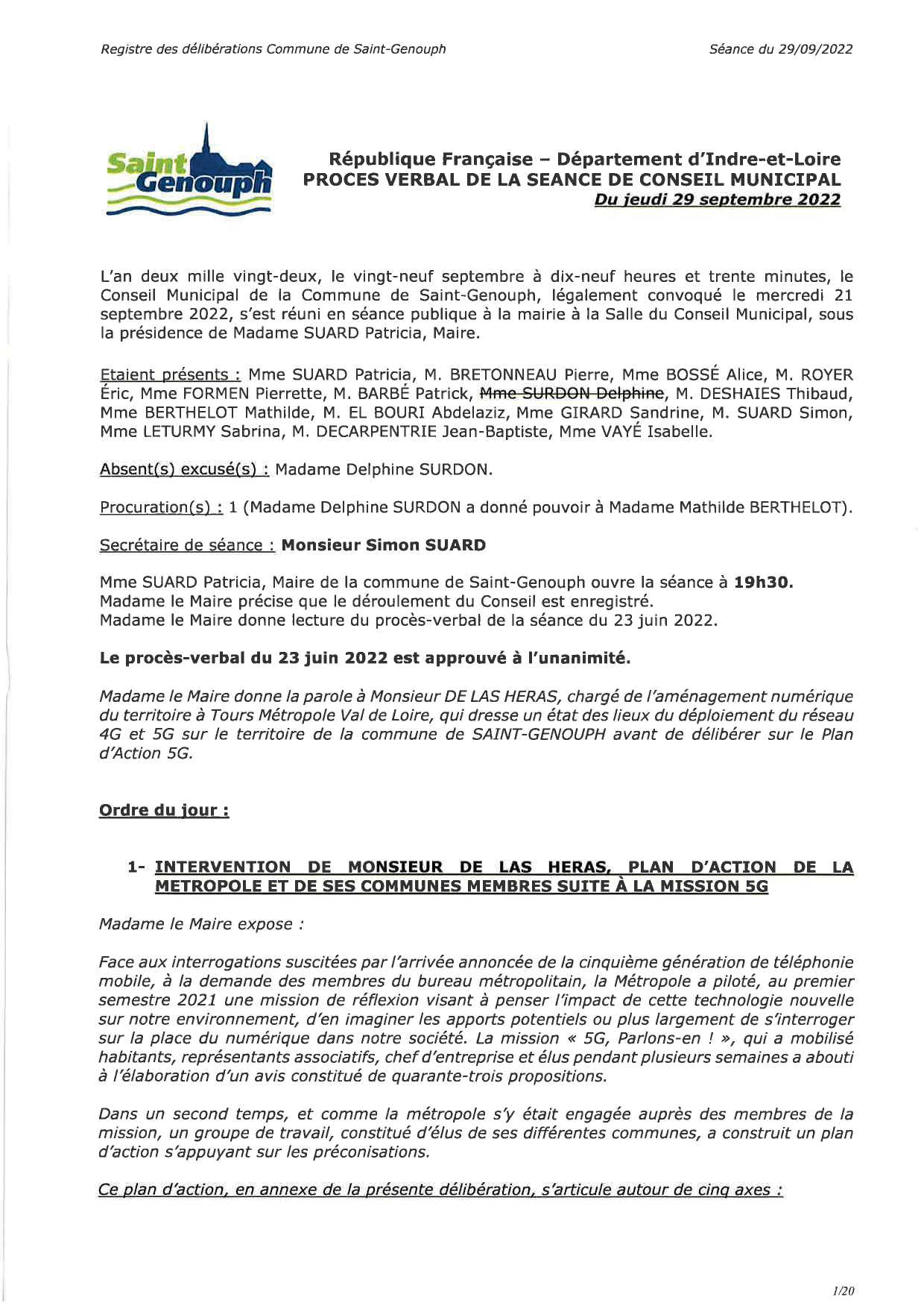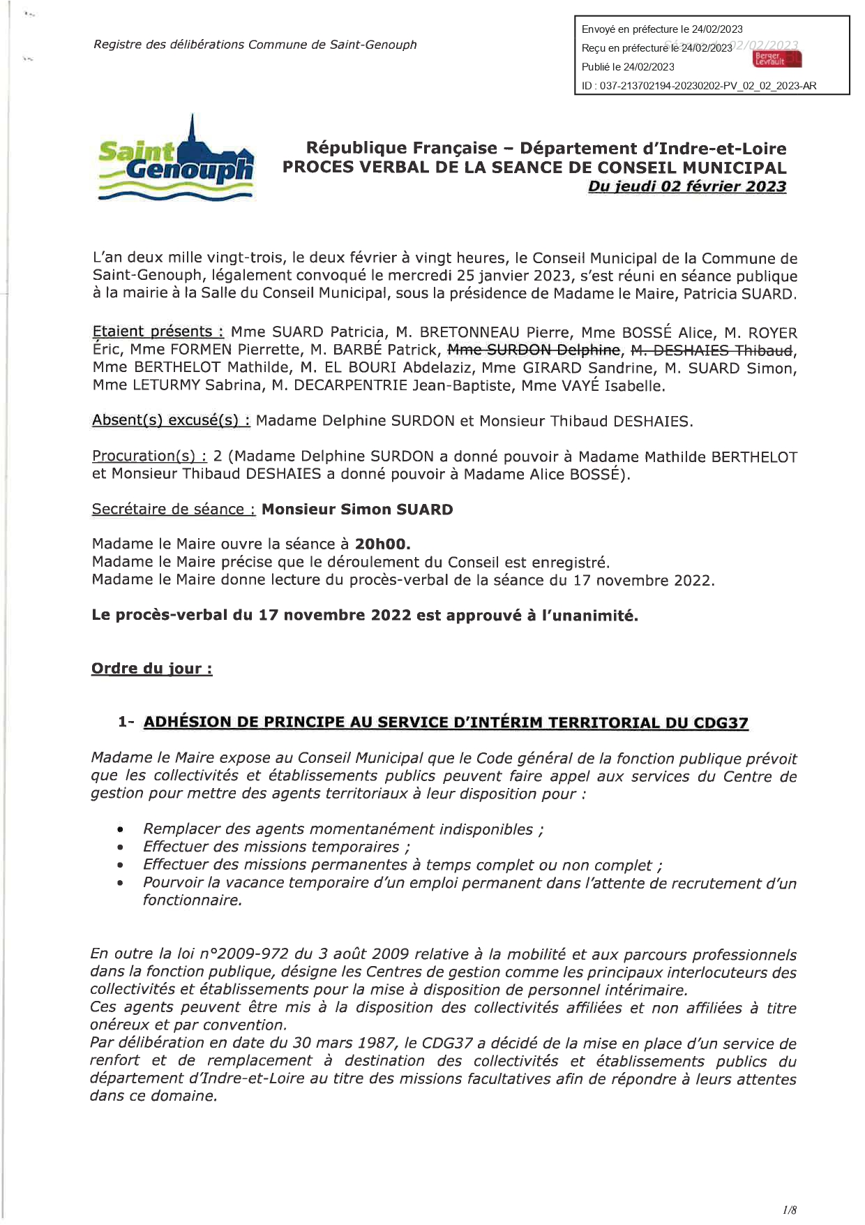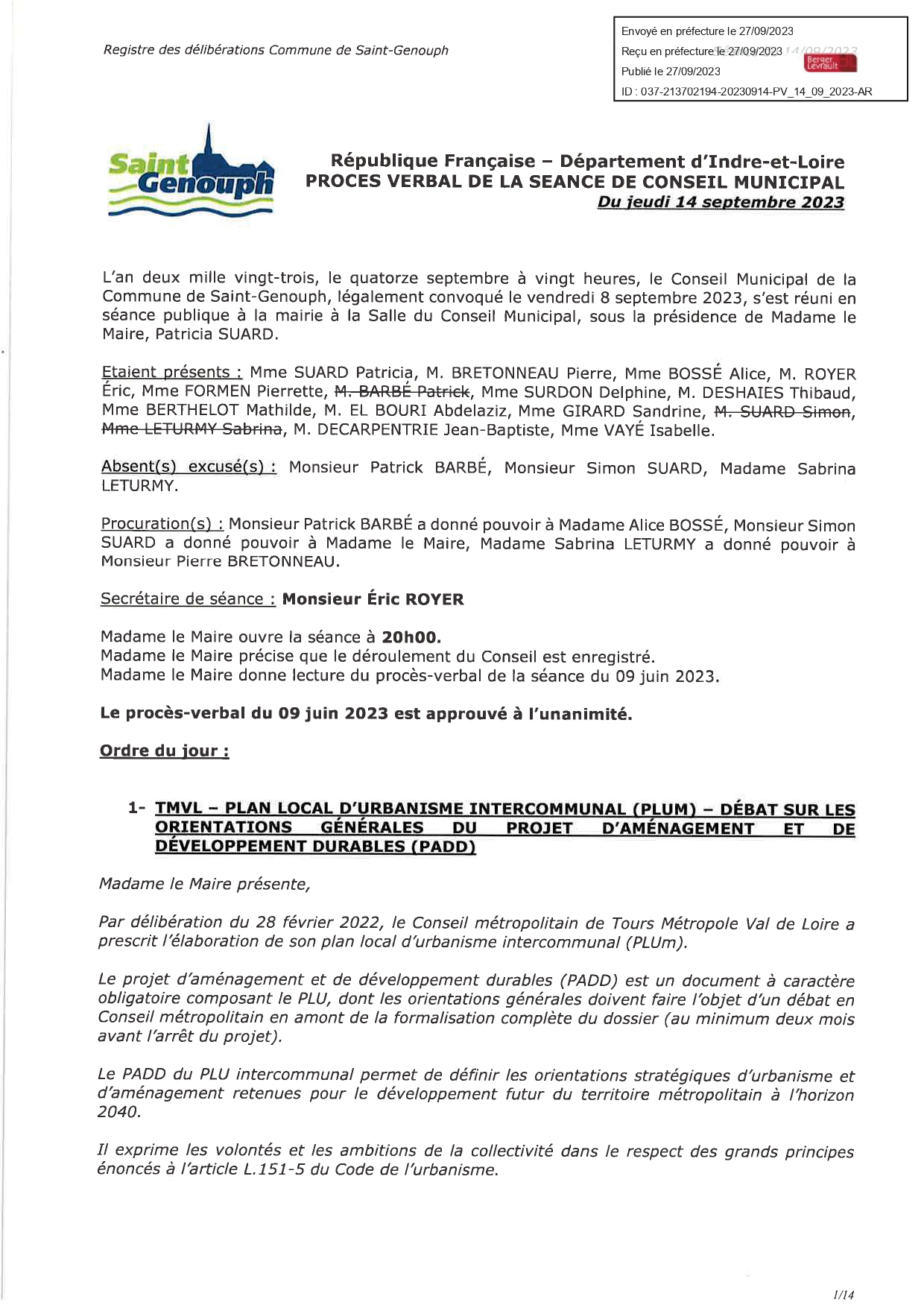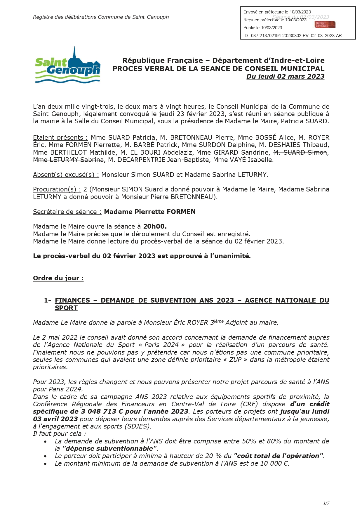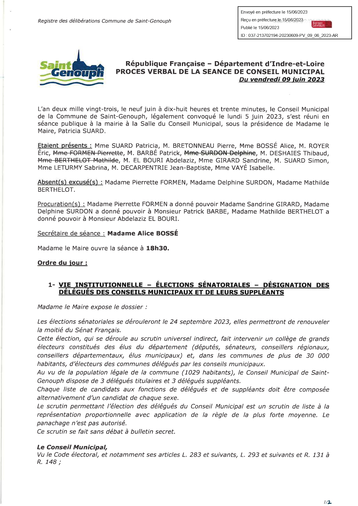 L'année 2023 : conseils municipaux de la commune de St Genouph