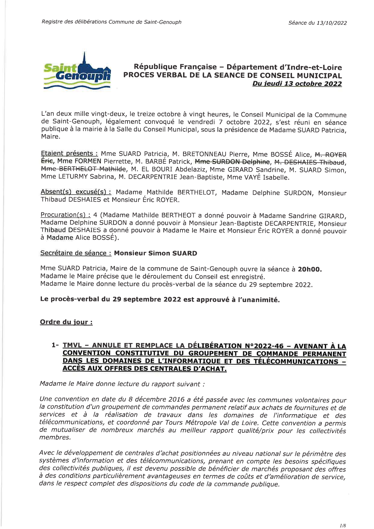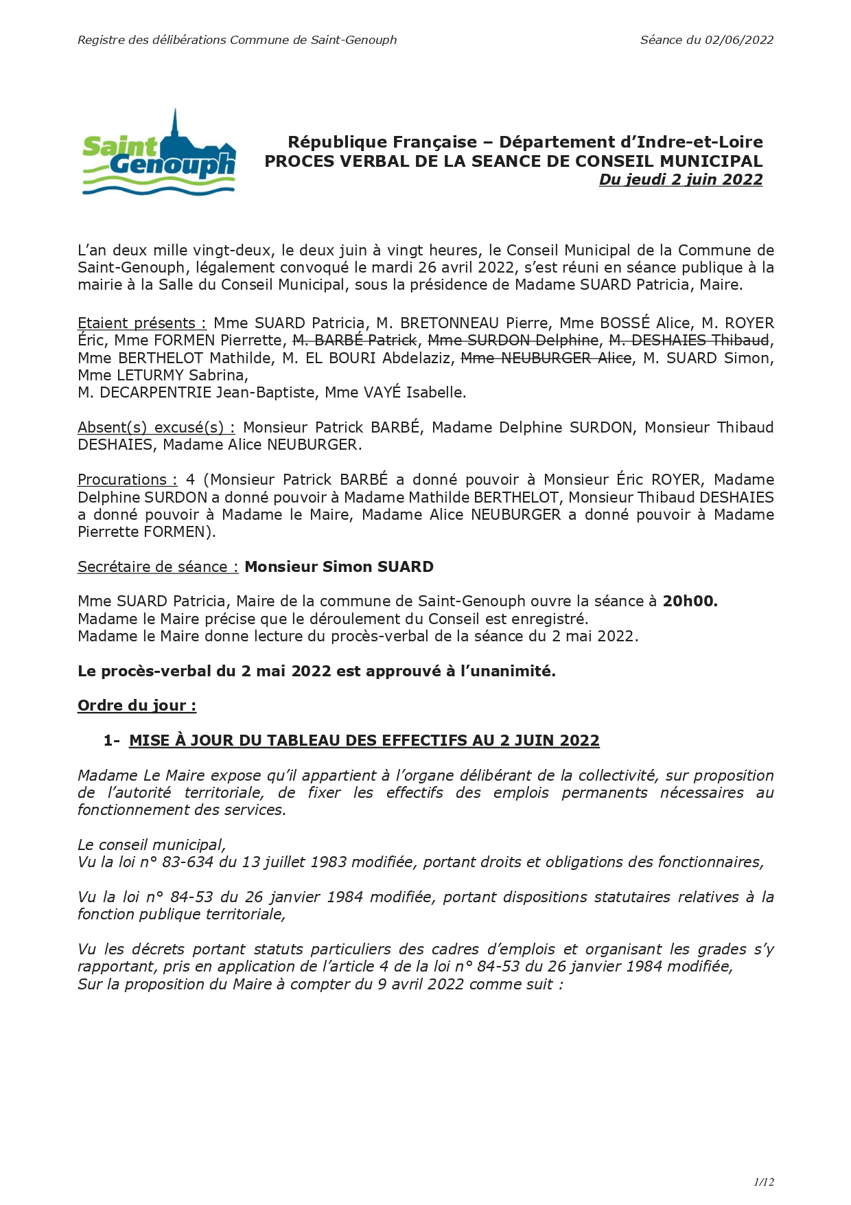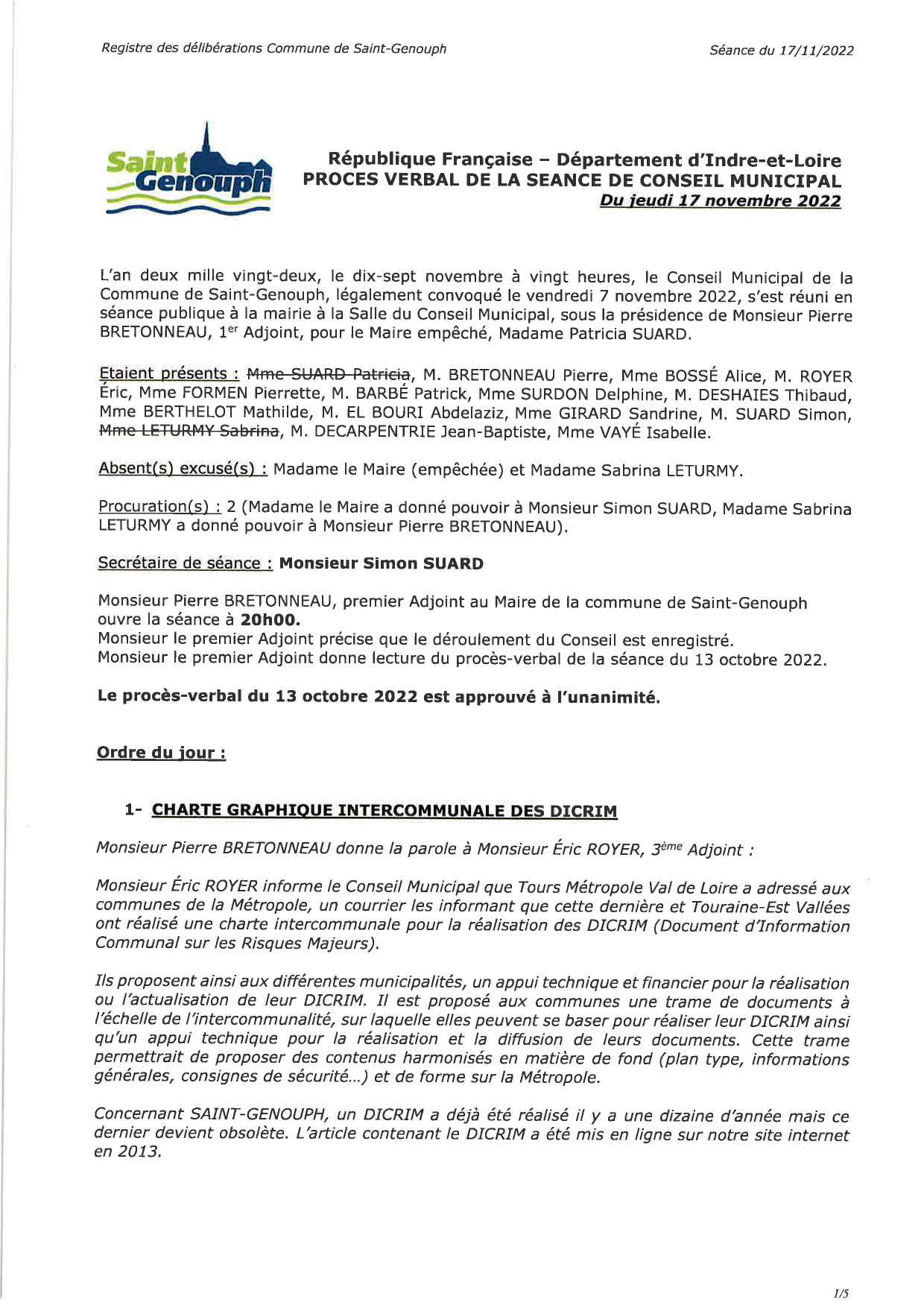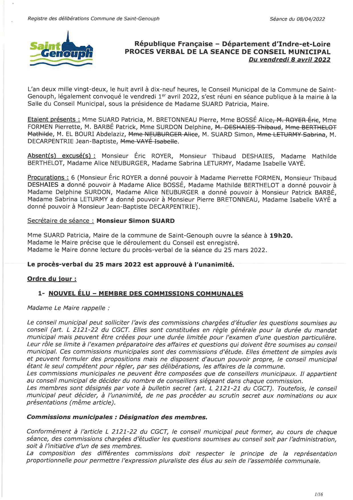 L'année 2022 : conseils municipaux de la commune de St Genouph