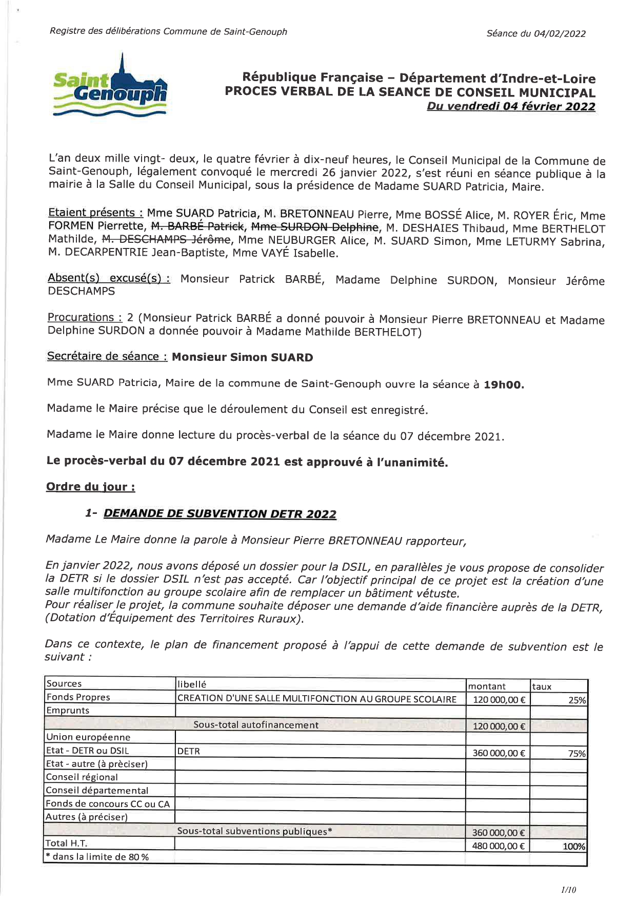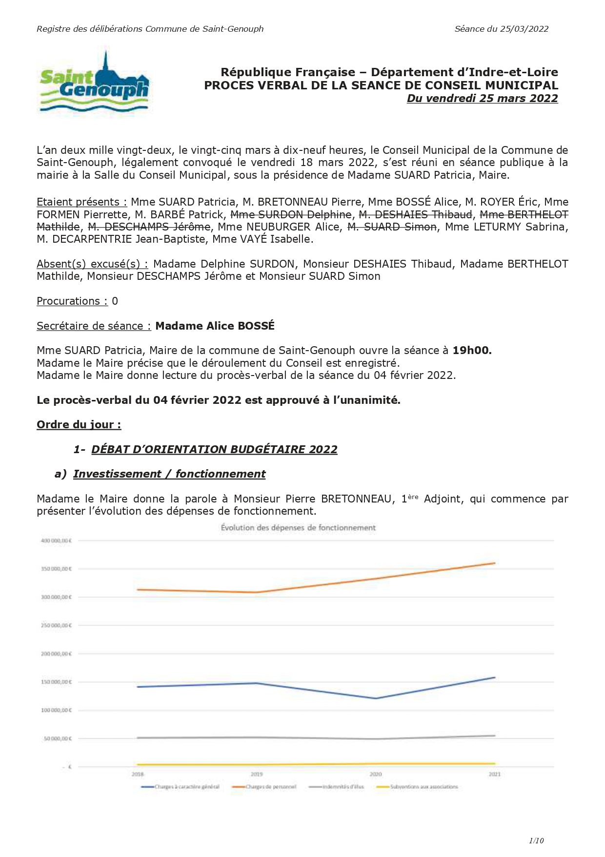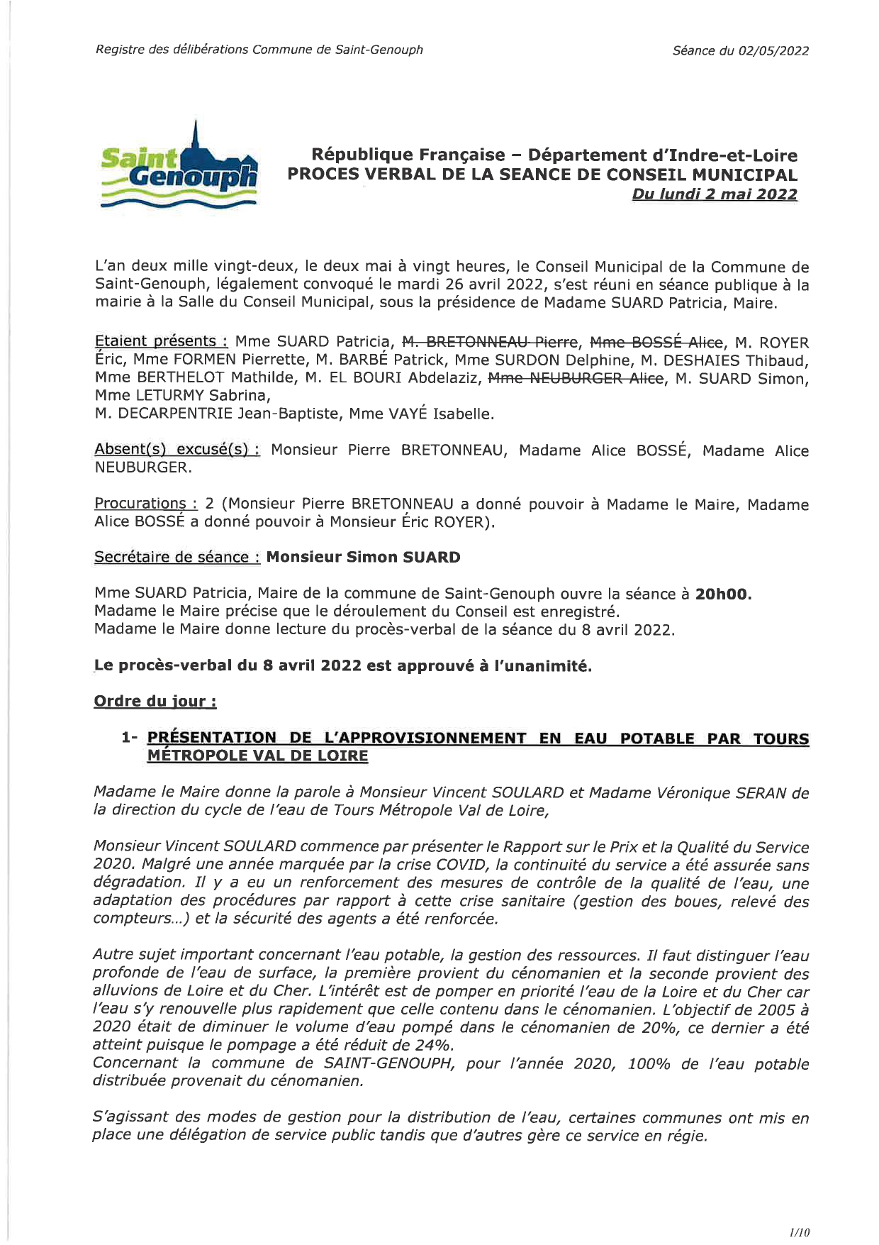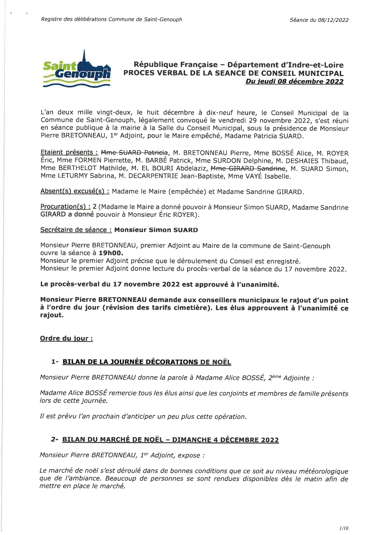 L'année 2022 : conseils municipaux de la commune de St Genouph
