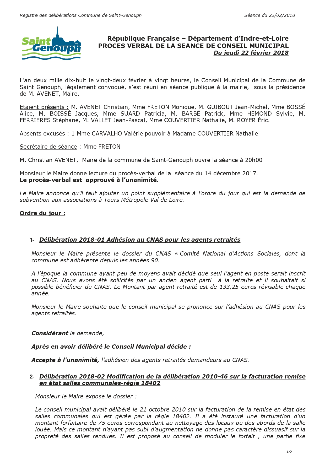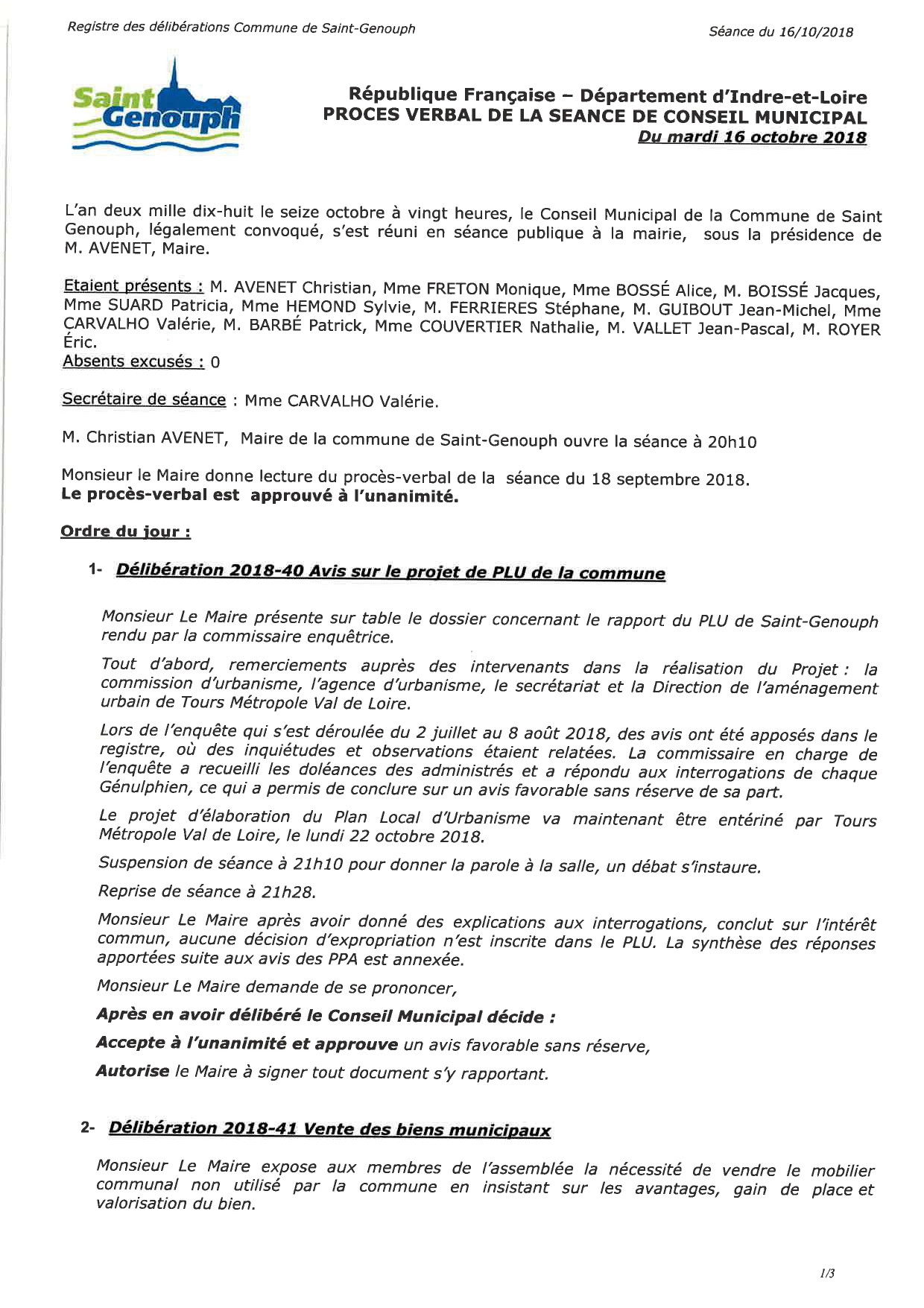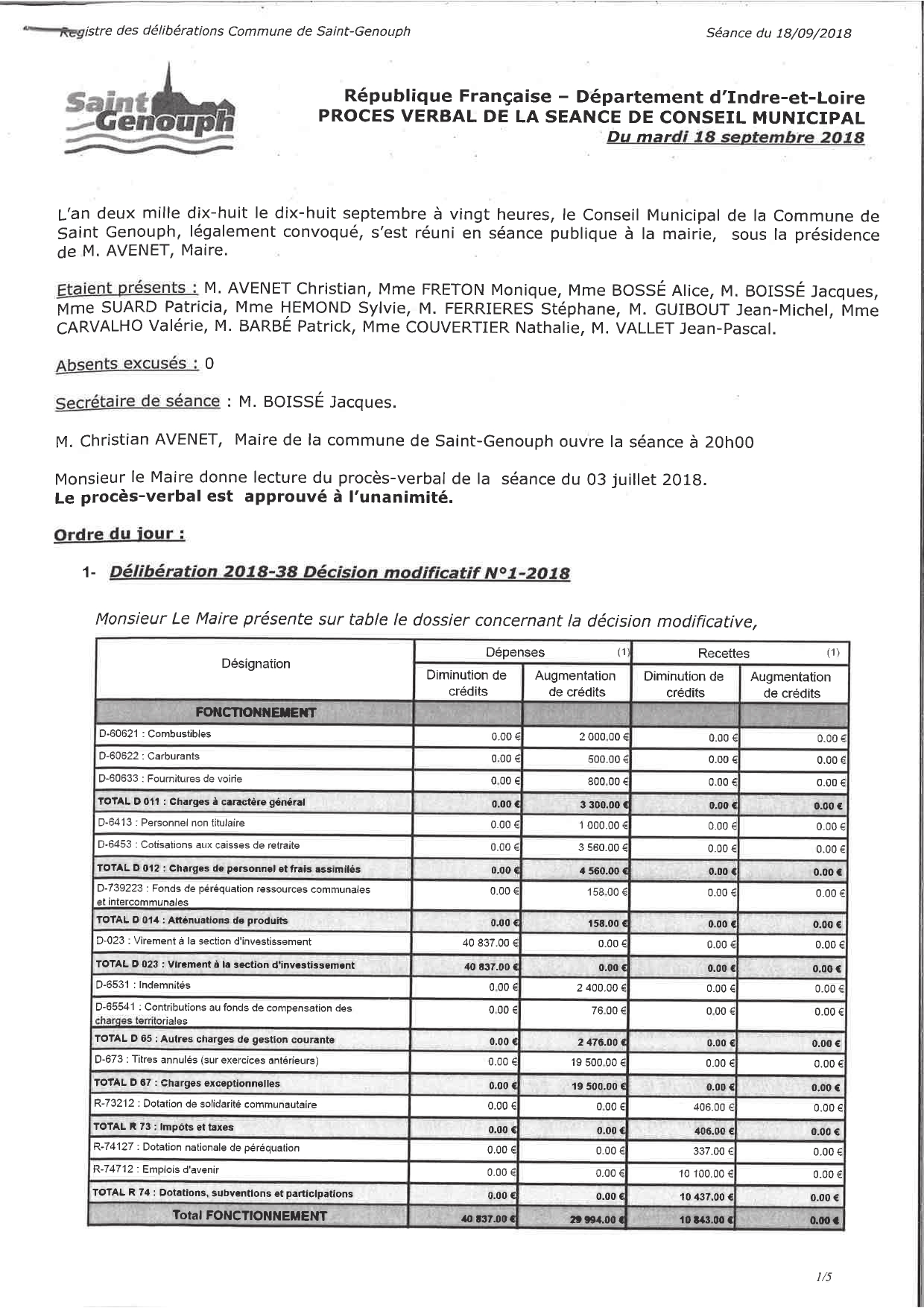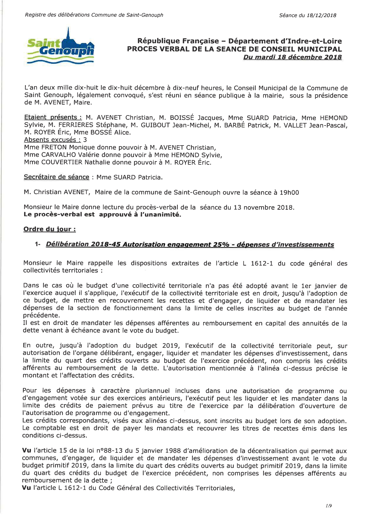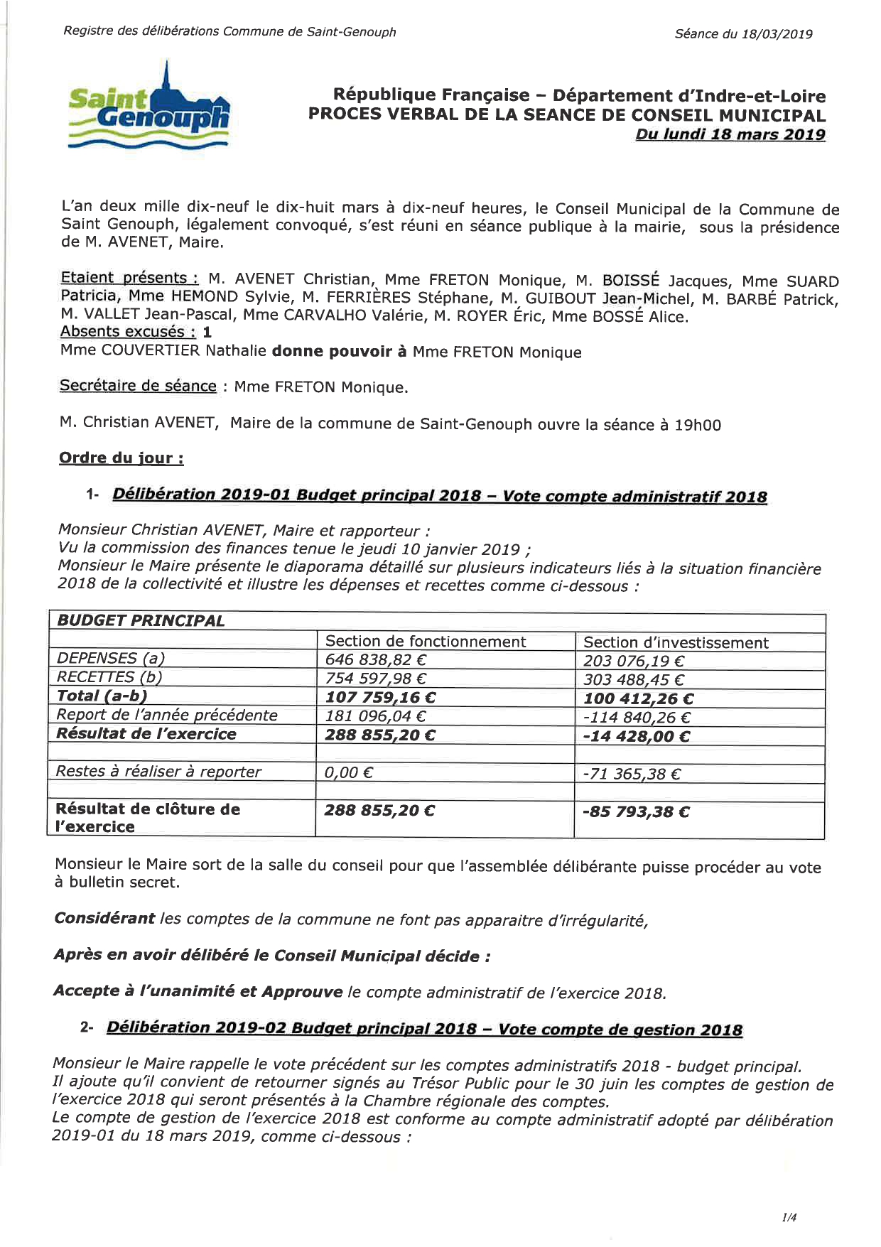 L'année 2018 : conseils municipaux de la commune de St Genouph