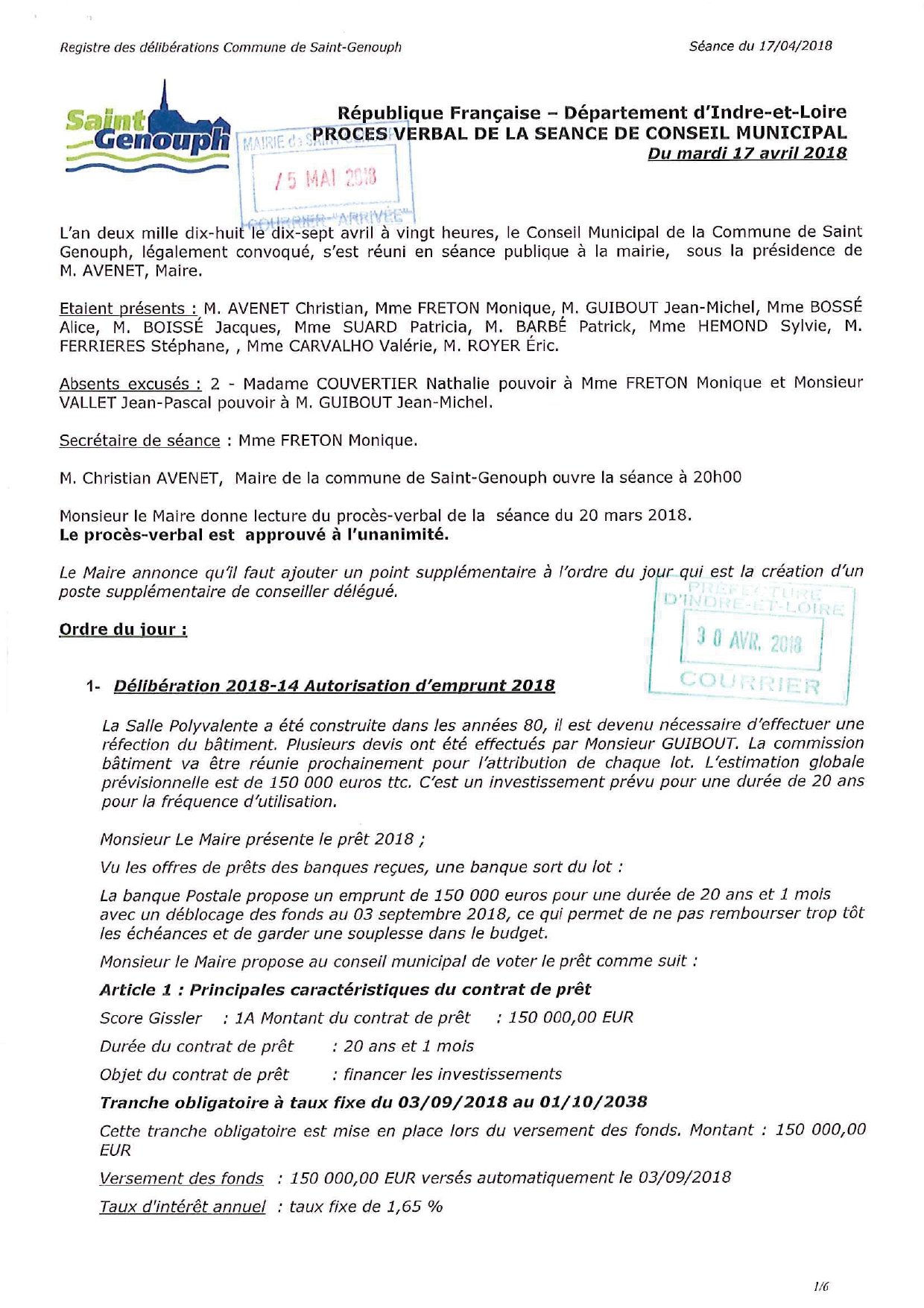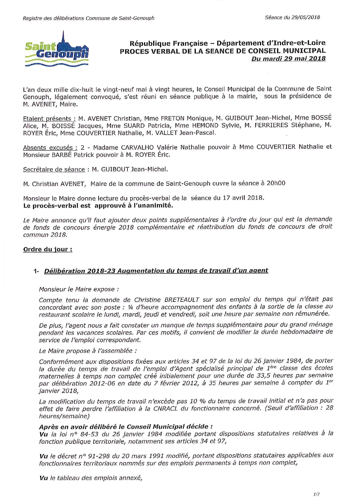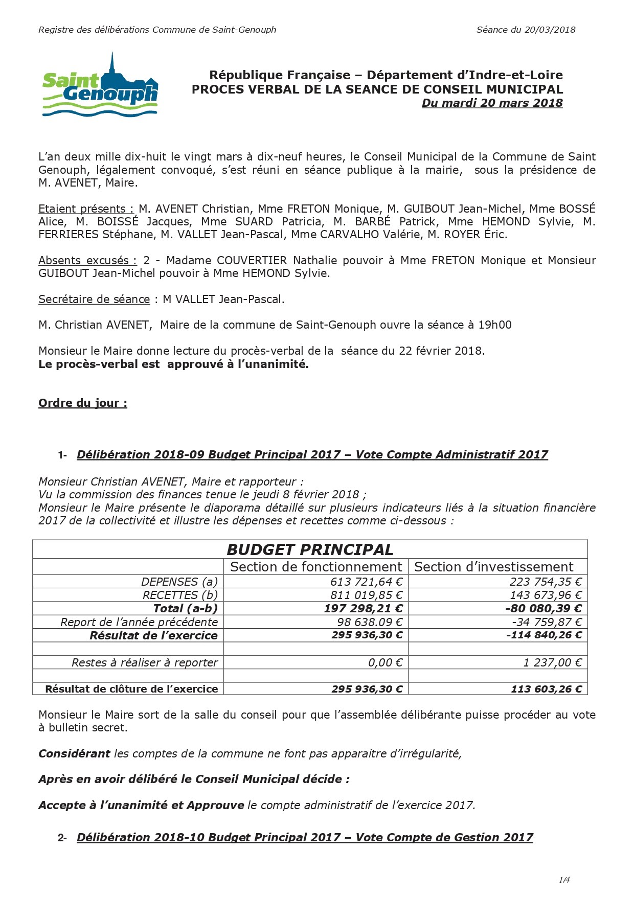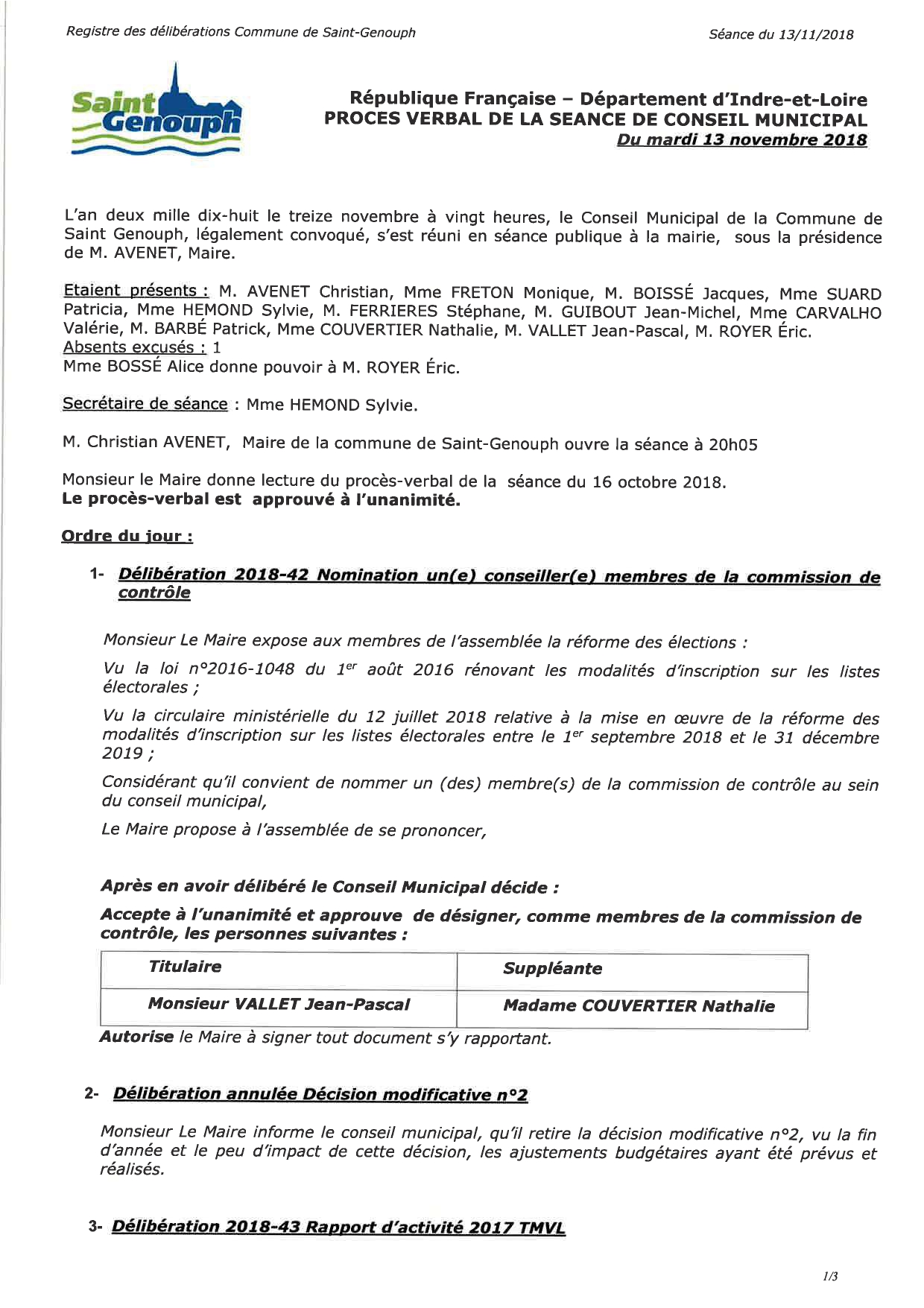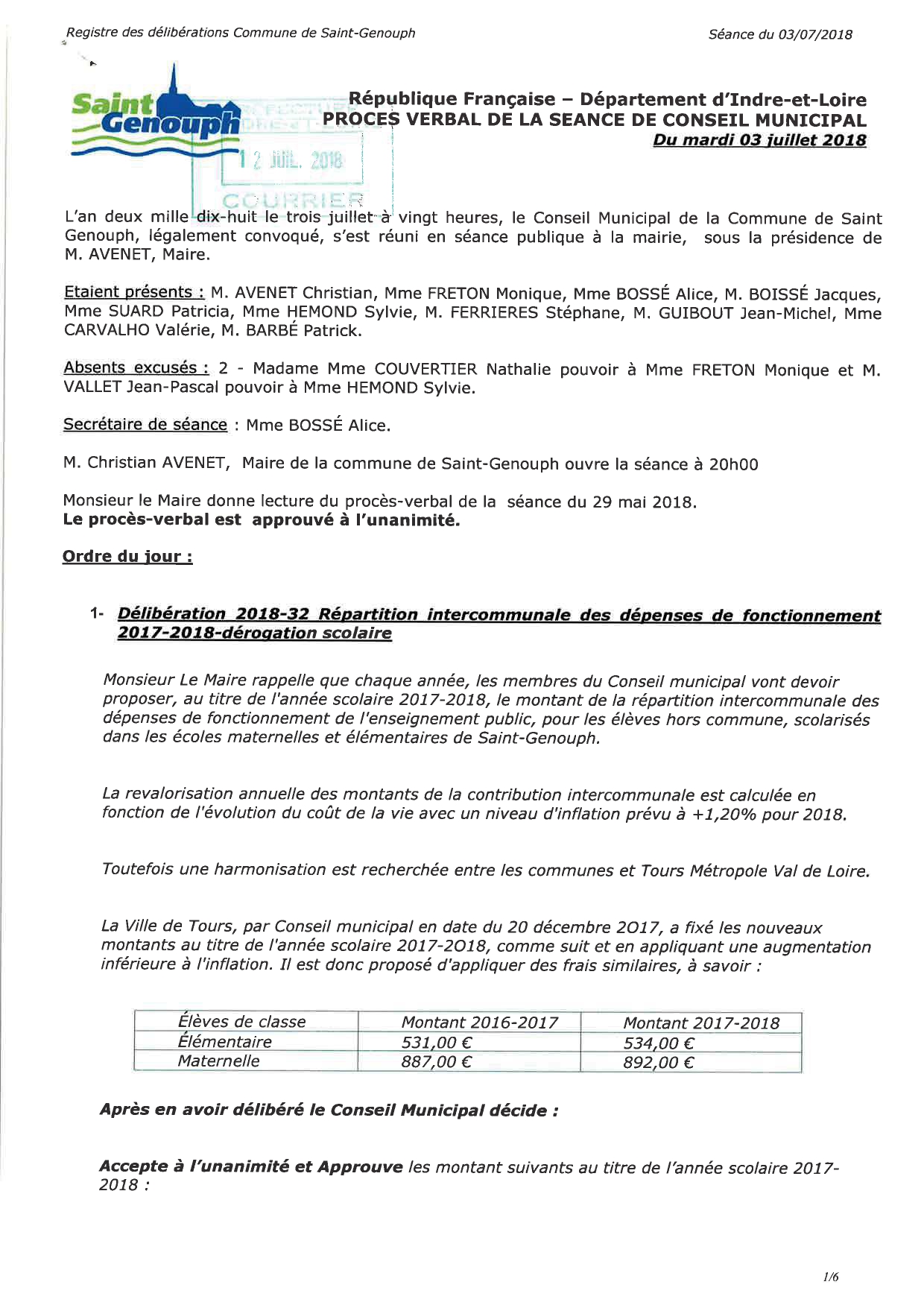 L'année 2018 : conseils municipaux de la commune de St Genouph