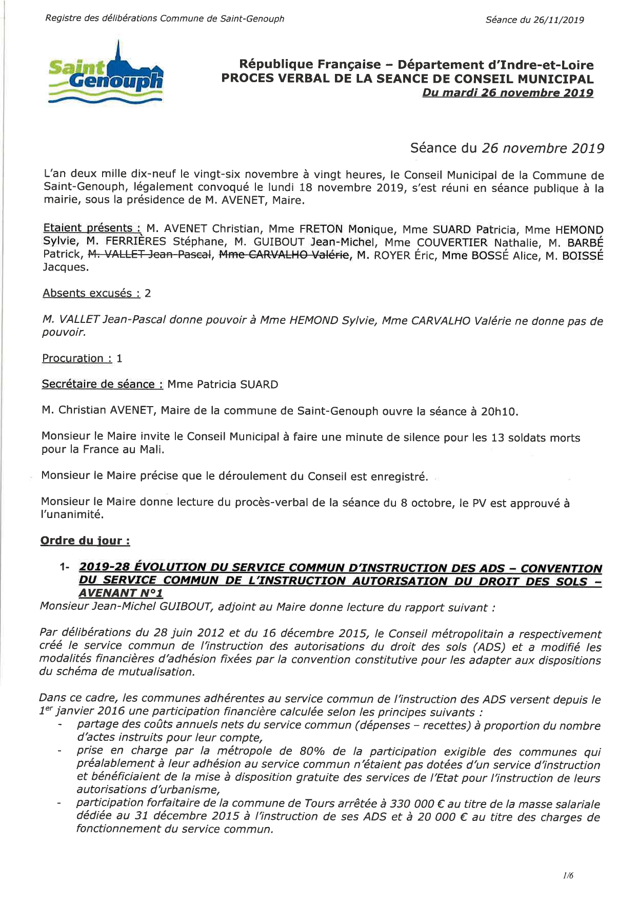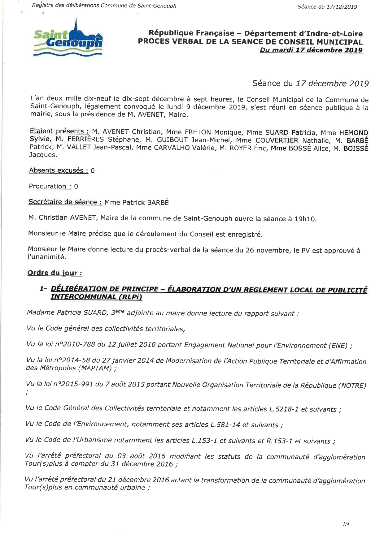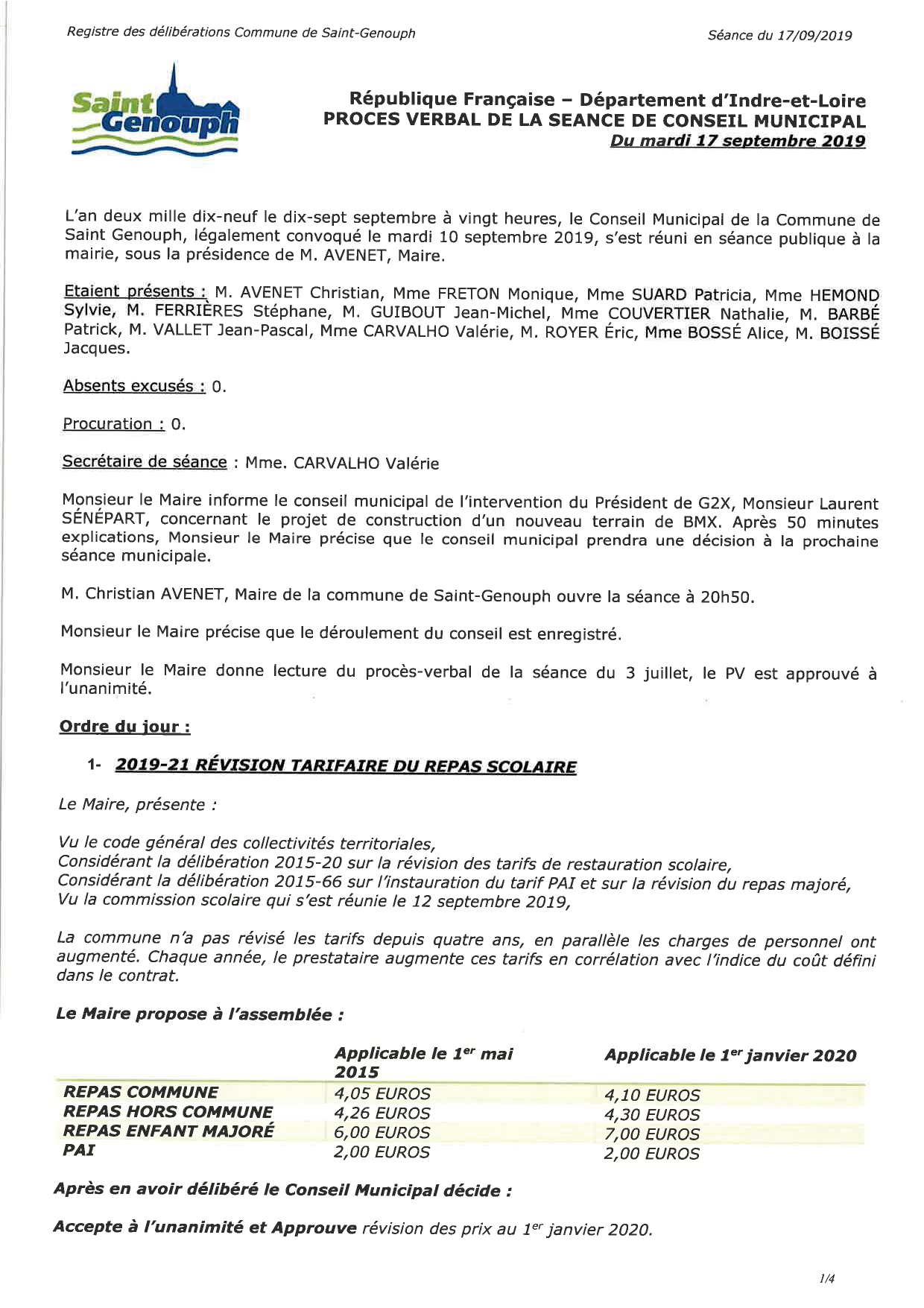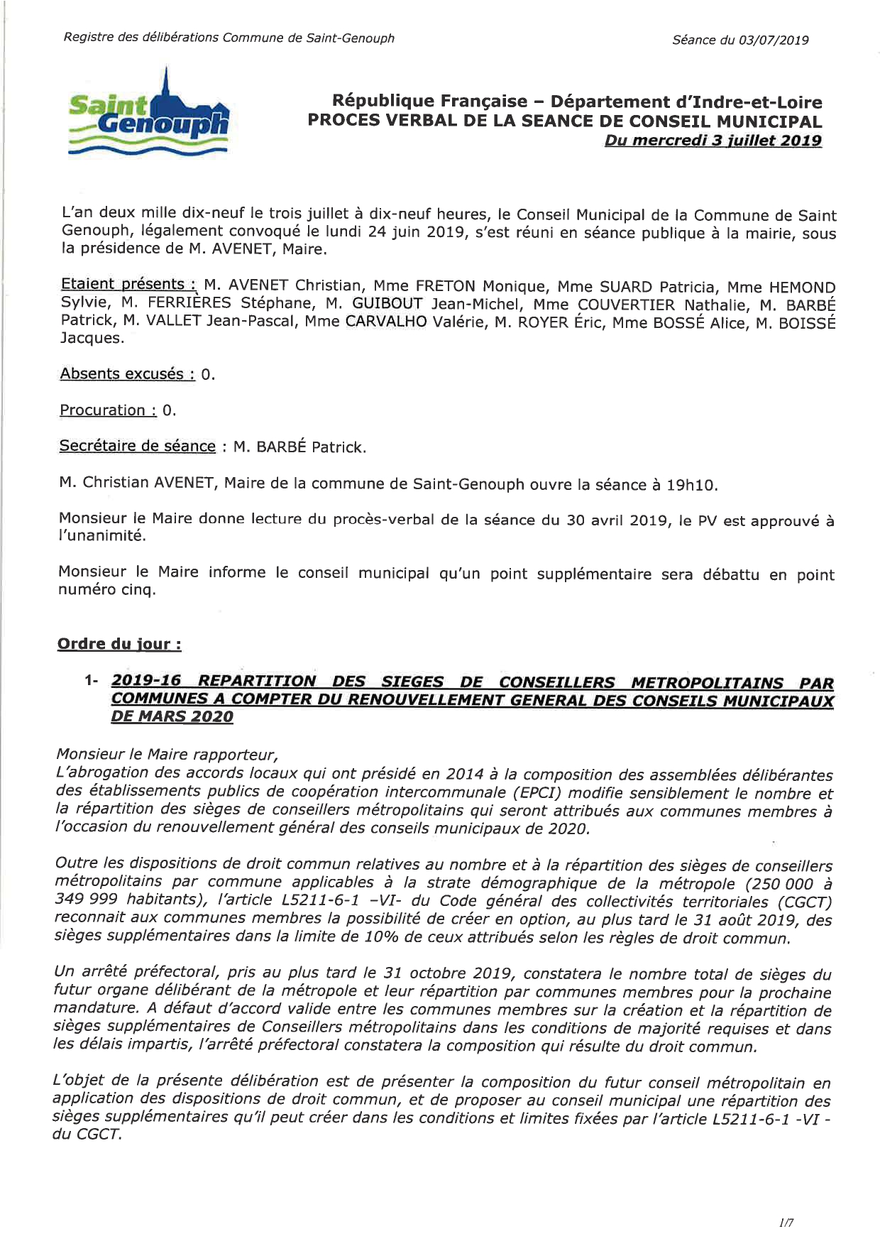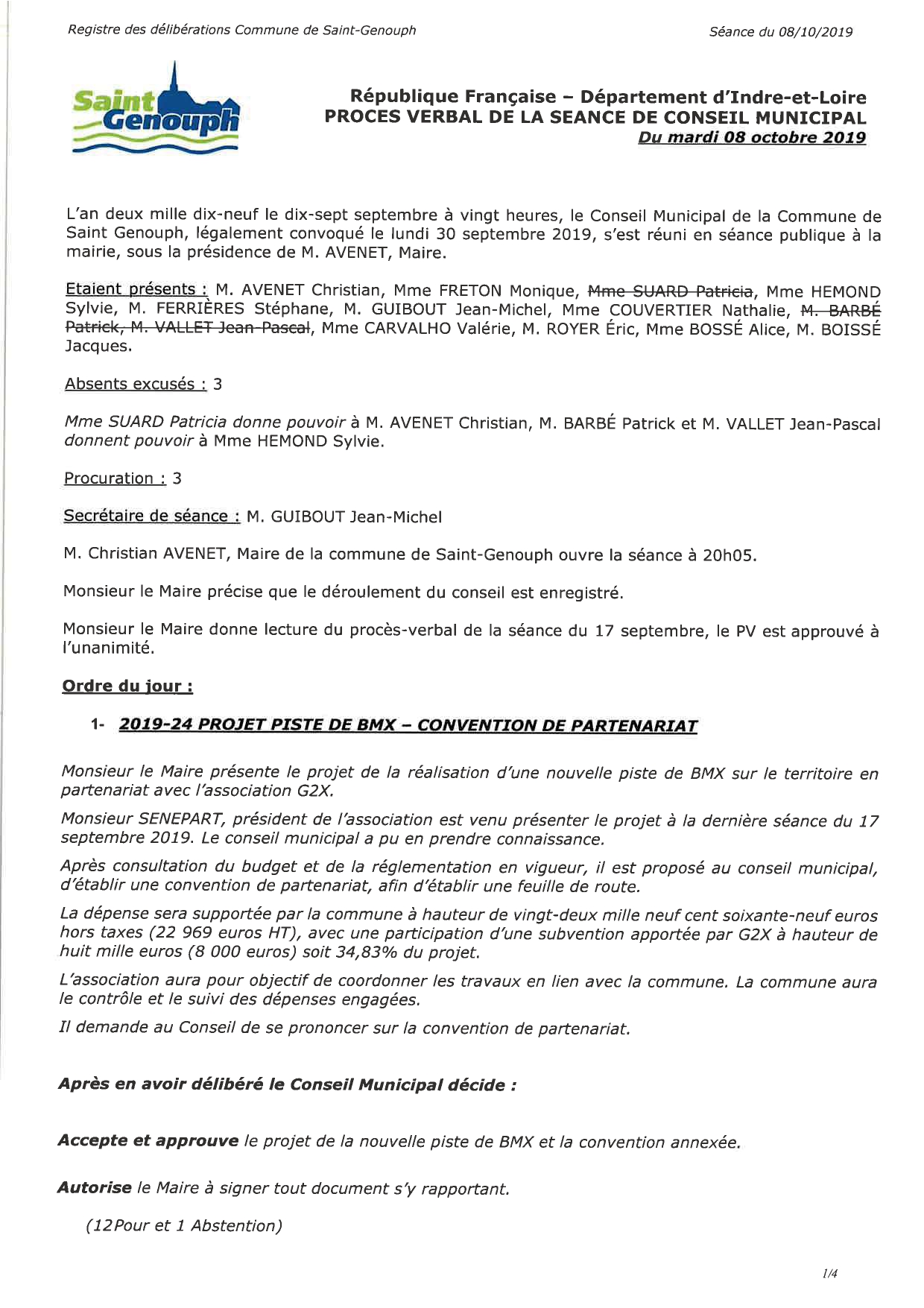 L'année 2019 : conseils municipaux de la commune de St Genouph